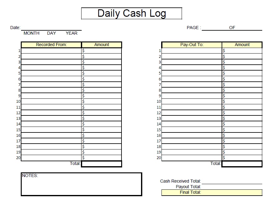 Daily Cash Log Sheet | Images and Photos finder